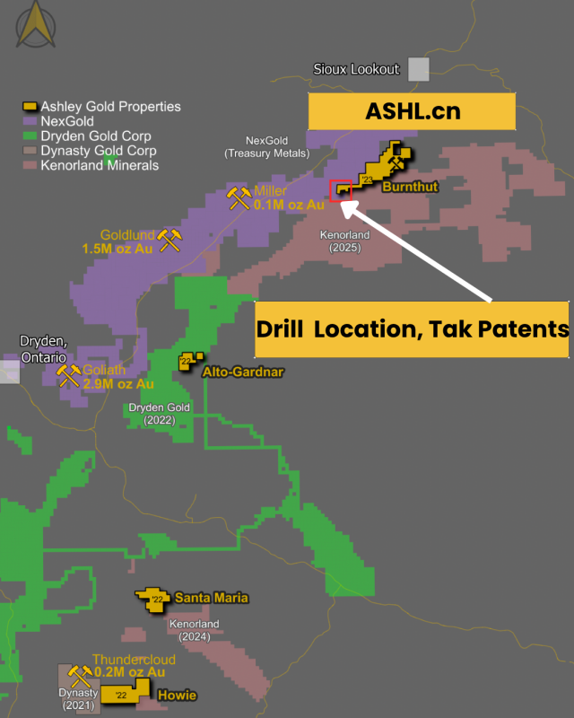 Ashley Gold Corp. is a Canadian mineral exploration company focused on acquiring and developing highly prospective gold and polymetallic deposits in Canada’s top mining regions. The Company’s flagship assets are in the Dryden Area in Ontario with a 100% ownership in Santa-Maria, Burnthut (including the Tak Patents), Howie, and Alto-Gardnar claims as well as in British Columbia with the Icefield Portfolio having two highly prospective claim packages.
