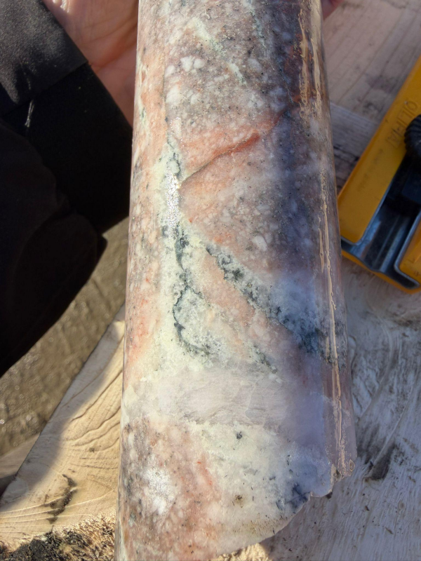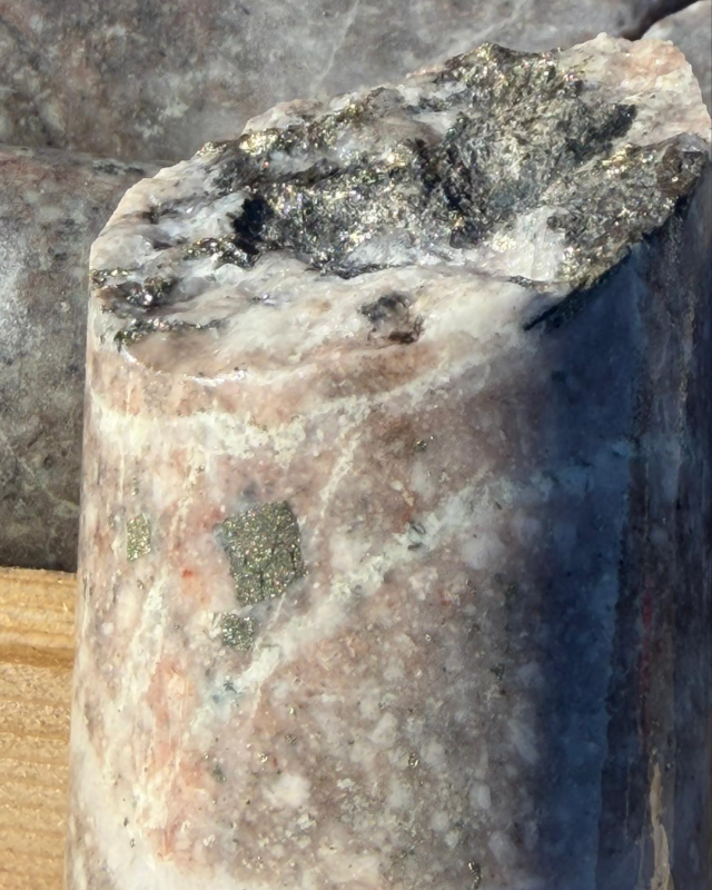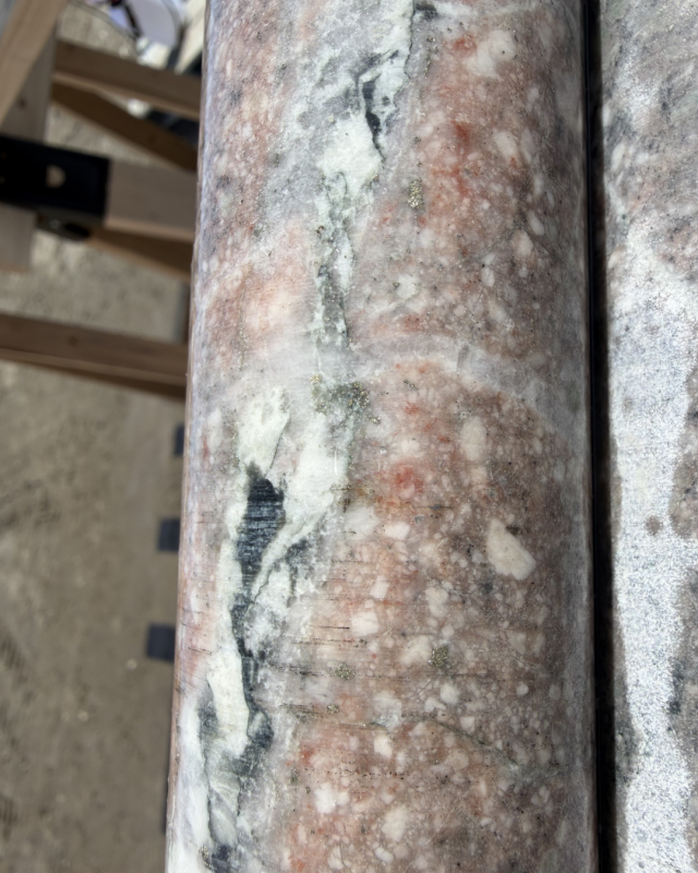 Figure 3: TAK-26-01 – Example Mineralization in Cut Sample – Quartz Stockwork with Hydrothermal Pyrite (around 4m)