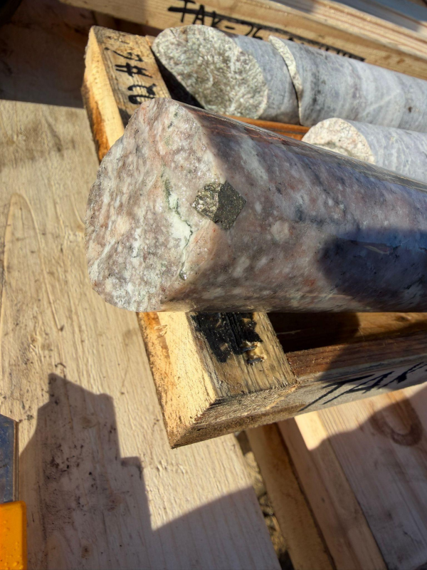 Figure 6: TAK-26-02 – Example Pyrite Cube in Potassic Altered Quartz Feldspar Porphyry