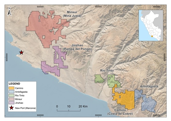 The proposed San Juan de Marcona Port represents a significant strategic advantage for Camino’s Costa de Cobre copper project and the overall mining sector in southern Peru. Located approximately 125 km from Costa de Cobre, with direct access via the Panamericana Sur, the new mining-focused port is expected to improve logistics and efficiency by reducing transport distances and lowering costs for copper production exports in the area. With planned capacity of up to 47 million tonnes per year and infrastructure designed to handle bulk mineral shipments, the port may increase the economic viability of development-stage projects by improving operating margins and project NPV. The proposed port project could enable mining growth in the region, providing further investment potential and strengthening Peru’s position as a globally competitive copper producer.