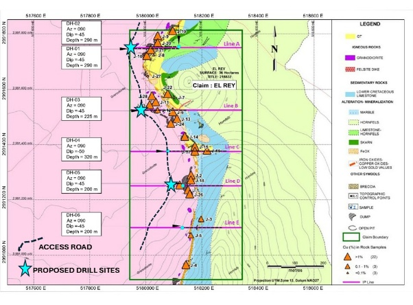 Following the initial underground mapping and sampling program, the Company will begin the second phase work program which consists of a 1500 meters diamond drilling program at Los Reyes. The drilling program is designed to test the >100m depth extensions of the high-grade Cu-Zn-Ag skarn zone that ASARCO (a large historic US mining company) previously mined at Los Reyes. The Company has submitted the environmental study report and expects permits to be received by late April 2026. Drilling is expected to commence right after.