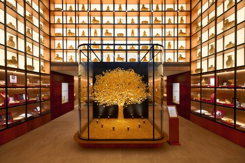 At the threshold of the store, a Heritage Pavilion chronicles the brand’s journey since its founding in 1929, celebrating Chow Tai Fook Jewellery’s pioneering role in the industry and its dedication to preserving ancient gold crafting traditions – including chasing and filigree – developed in collaboration with leading cultural and academic institutions.