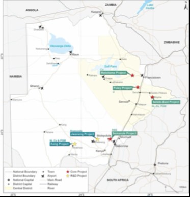 The Company’s additional projects include Selebi East, a nickel-copper-cobalt project located seven kilometres east of the historic Selebi Mines; the Semarule Rare Earth Elements Project, positioned within the Gaborone-Molepolole corridor; the Foley Uranium Project, adjoining the Letlhakane uranium deposit; and the Keng Project, which targets nickel, copper and PGE’s on the northern margin of the Molopo Farms Complex.