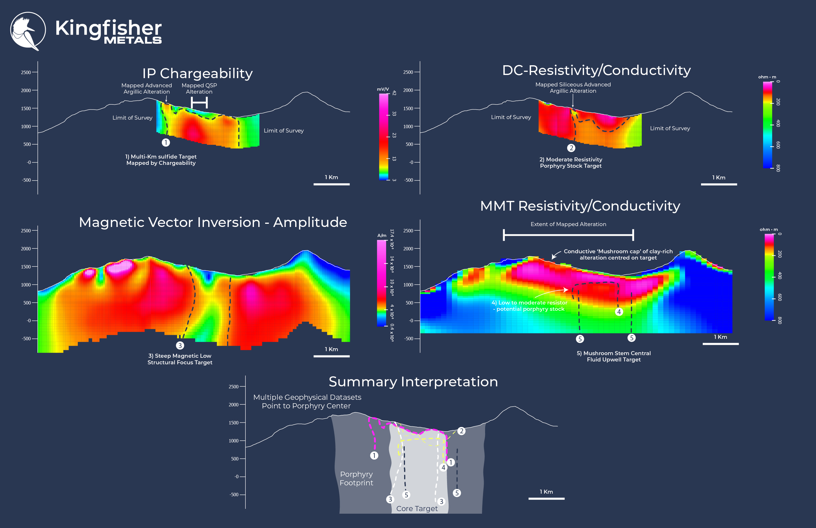 Resistivity (MMT and DC): Integrated resistivity datasets define classic porphyry-style architecture: