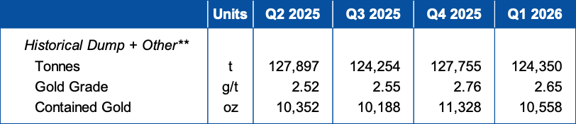 During Q1 2026, the Moss Mine maintained strong safety and environmental performance, completing the quarter with no lost-time injuries and no reportable environmental incidents. Operations remained in compliance with all applicable safety and environmental regulations, underscoring the site’s commitment to safe and responsible operations. Operational performance improved compared to the fourth quarter of 2025 (“Q4 2025”). Mining activities were more consistent throughout the quarter, and processing performance improved month over month, with March representing the strongest operating month to date. These improvements were supported by better equipment availability and more stable plant operations. Gold ounces placed on the heap leach pad and gold recovered through processing increased compared to the prior quarter, reflecting improved operational consistency and steady performance across the mining and processing areas.