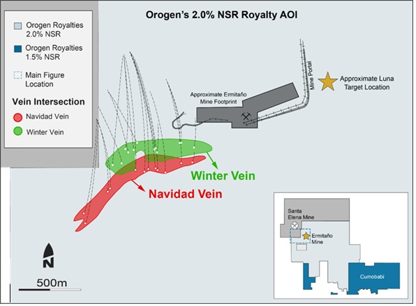 Paddy Nicol, Orogen’s CEO commented, “Exploration and mineral resource expansion at Ermitaño has continued to deliver strong results over 2025. In particular, the Navidad vein system, where Orogen holds a 2% NSR royalty, drove the largest percentage increase in Inferred Resources across First Majestic’s operations. This achievement, along with the rest of the resources at Ermitaño and the Santa Elena mine complex, provides meaningful life-of-mine extension possibilities. For 2026, First Majestic estimate 78,000 metres of drilling across the Santa Elena mine complex including Navidad and the greater Ermitaño concession.” 3