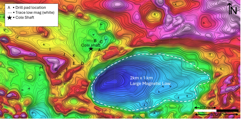 “What this program has returned is extraordinary – not just in terms of the visible gold we have observed in drilling, but in what it tells us about the scale and complexity of the system at Cole. We set out to confirm gold at the Cole mine, test the rheological contact, and follow up on our high-grade surface samples. We accomplished all three. Importantly, we have identified new veins, broader alteration systems than we knew existed, and now a compelling dome-style target defined by airborne magnetics that points to a structurally complex, potentially district-scale gold system. Cole Gold Mines sits in one of the most prolific gold districts on Earth, and we believe we have only scratched the surface of what this property holds. We look forward to reporting assay results as they are received.”