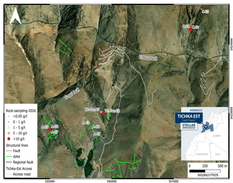 Stellar AfricaGold – Tichka Est Gold Project Momentum Builds as Technical Program Advances; High-Grade Rock Sample of 218.15 g/t Au Returned Between Zones A and B