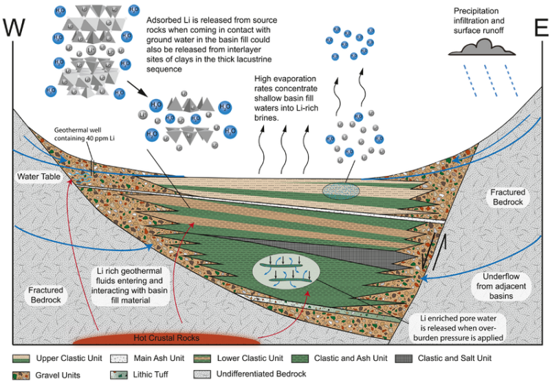 Figure 3: Conceptual cross-section of the Pocitos salar basin showing brine-bearing horizons