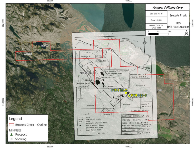Vancouver, BC – TheNewswire – April 10, 2026 – Vanguard Mining Corp. (“Vanguard” or the “Company”) (UUU: CSE | UUUFF: OTCID | SL51: Frankfurt) is pleased to announce that it has filed its maiden independent National Instrument 43-101 (“NI 43-101”) technical report (the “Technical Report”) for its 100%-owned Brussels Creek Project (the “Project”), located in the Kamloops Mining Division of south-central British Columbia.