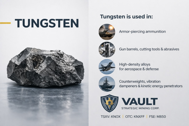 Figure 2. Tungsten and its uses. Visit Vaultstrategic.com